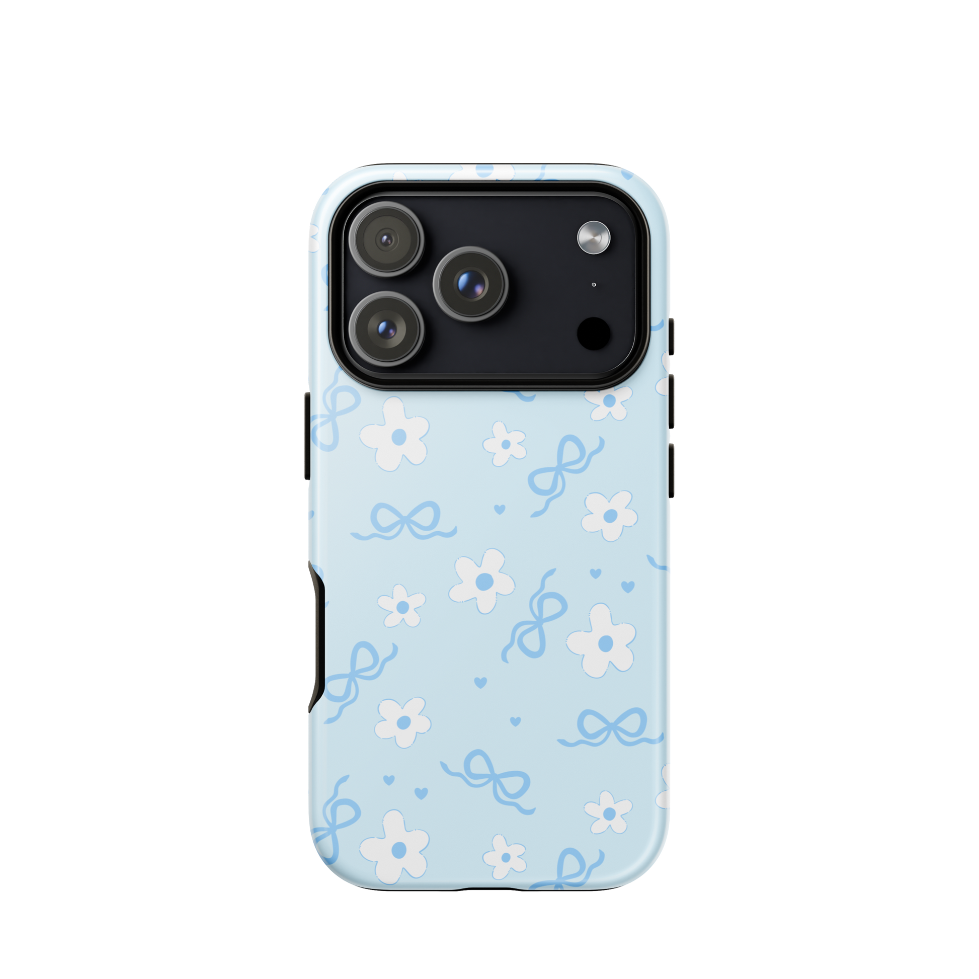 Soft, sweet, and perfectly pastel — this baby-blue case features delicate ribbon bows and tiny white blossoms for a dreamy coquette vibe. With a smooth dual-layer protective shell, it keeps your phone safe while adding a gentle, feminine touch to your everyday style. A must-have for soft-girl lovers and anyone obsessed with pastel aesthetics.